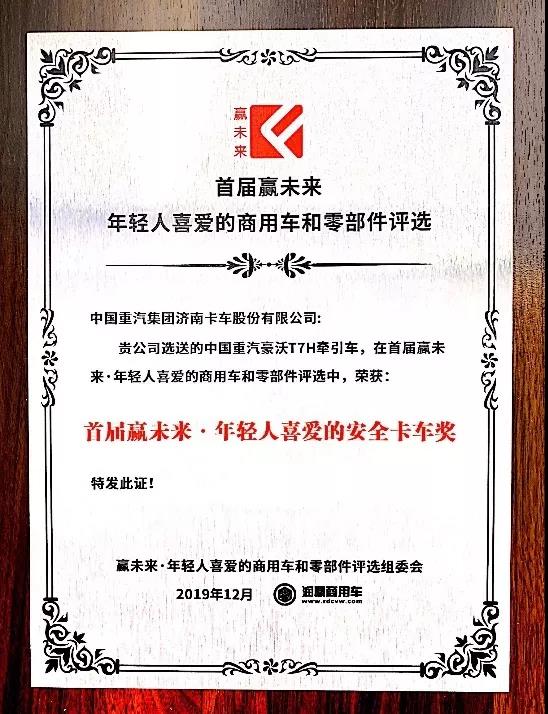 ——豪沃T7荣获“年轻人喜爱的安全卡车奖”!
