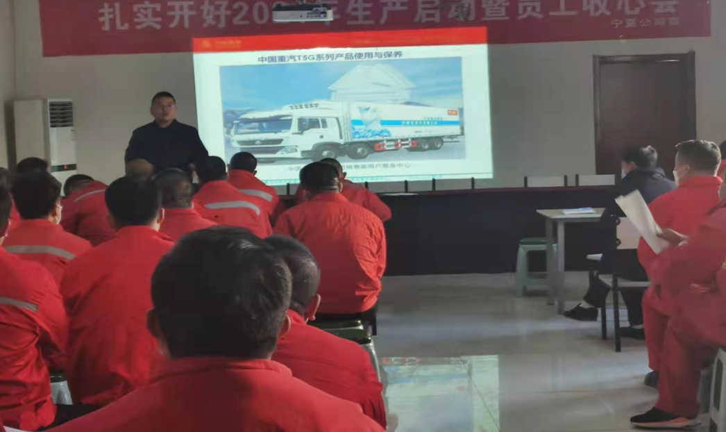 2021年新年伊始,当大家都还沉浸在新年的喜悦当中,长庆油田宁夏公司已经召开了开工动员大会,据车队张队长说,今年的开工日期比往年早了好几天。春节前中国重汽银川分公司就协调银川重通服务站和张队长沟通,开工之前要给运输车队的司机们进行车辆驾驶和保养的培训。