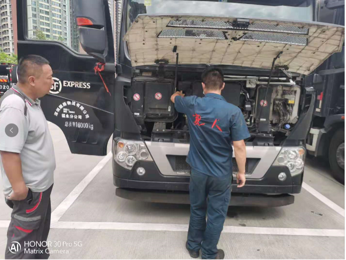 为深入贯彻“客户满意是我们的宗旨”服务理念,中国重汽为广大快递快运客户提供高效的“亲人” 服务,保证快递快运运输时效。深圳分公司辖区深圳集鑫服务站作为深圳市顺丰速运重汽售后合作伙伴,贯彻重汽下发 2021年电商6.18主动关怀体检服务政策,由车间主任、接车员、各班组组长带头专人对深圳市顺丰快递运输车辆进行上门主动排查,提前消除车辆安全隐患,保证其可靠运行,提高物流运输时效。