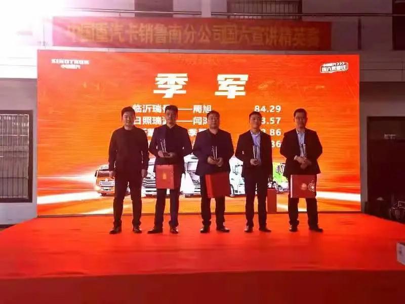 中国重汽卡销鲁南分公司宣讲精英赛—临沂赛区落下帷幕,汇集临沂、日照、枣庄共16位选手,经过一天的激烈角逐产生了冠亚季军。通过对业务人员的商务礼仪、车辆产品知识熟悉度、车辆优势、日常沟通技巧等方面,进行评选,评选出7名优秀业务人员,并进行奖励。