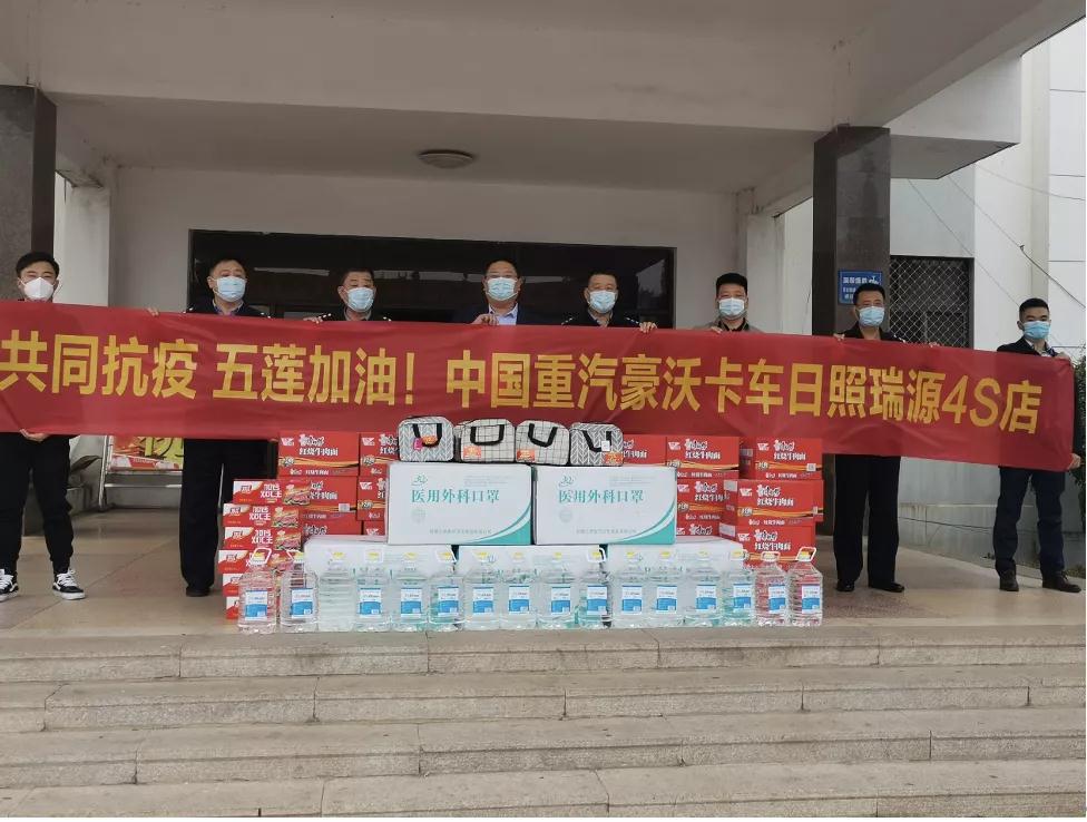 疫情见真情!疫情来势汹汹,更需众志成城。豪沃卡车日照瑞源4S店向战斗在疫情一线的公安干警捐赠消毒液、口罩等防疫物资和食品,同时给坚守岗位的医护人员和警察送去慰问物资,让所有一线抗“疫”战士感受到来自社会的支持和温暖,同时把中国重汽“亲人”般的温暖送达到五莲人民的身边!中国豪沃以实际行动践行了企业的社会责任与担当,为打赢疫情防控这场硬仗而贡献力量。