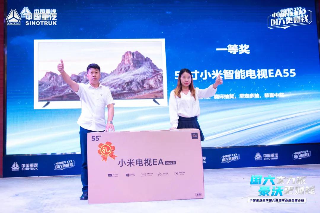 作为实打实的载货好搭档,中国重汽不仅带来了好产品,更燃情公布了优惠政策和贴心豪礼,现场订车客户均有机会获得精美家电好礼,更有55寸小米智能电视作为一等奖引爆全场。本次品鉴会共斩获订单XX台,再次印证了中国重汽强大的品牌实力。