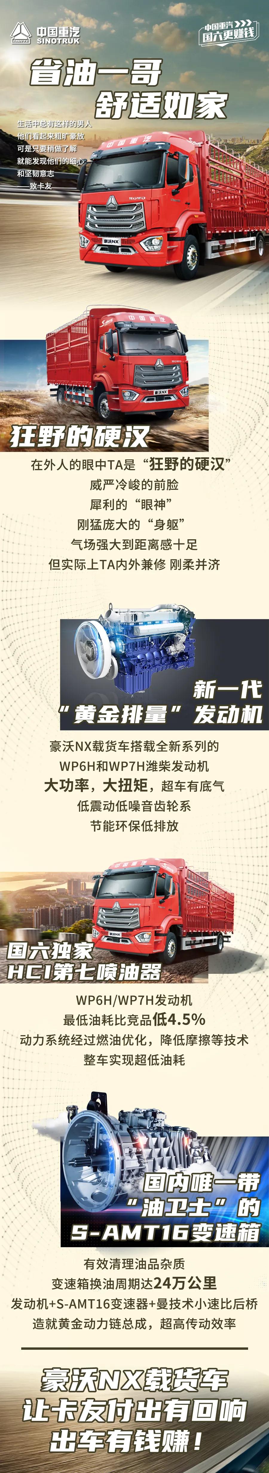 “省油一哥,舒适如家”豪沃NX载货车,让卡友付出有回报!