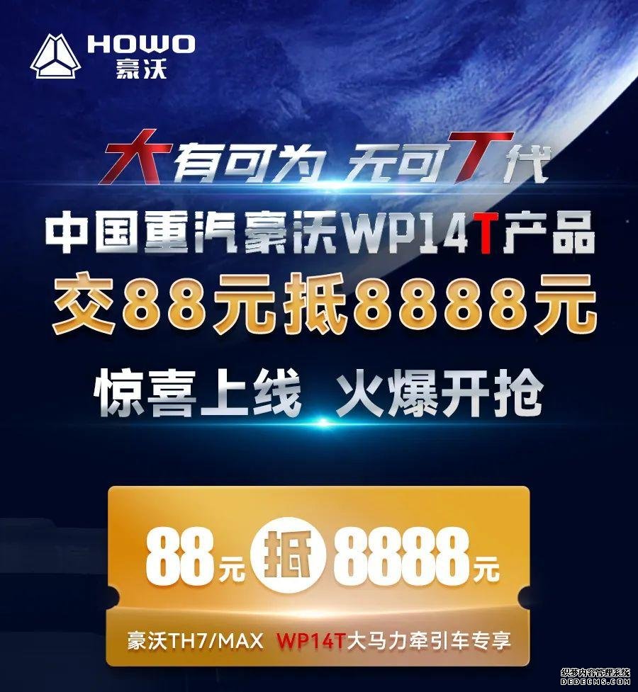 今日开抢!豪沃WP14T大马力产品「交88元抵8888元」优惠券燃情上线!把握先机创富不等待!