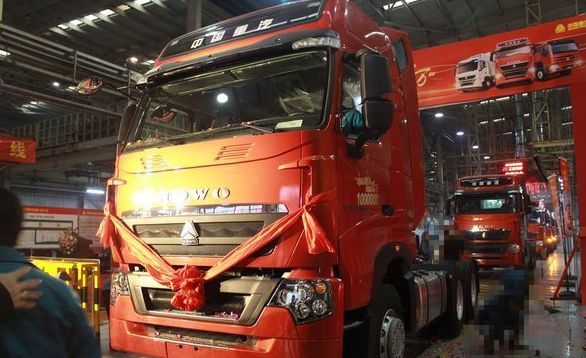 高光时刻一:2017年12月12日,在中国重汽集团济南卡车股份有限公司总装车间,一辆红色的重汽豪沃T7H牵引车缓缓驶下总装线,中国重汽豪沃重卡第一百万辆车正式下线。