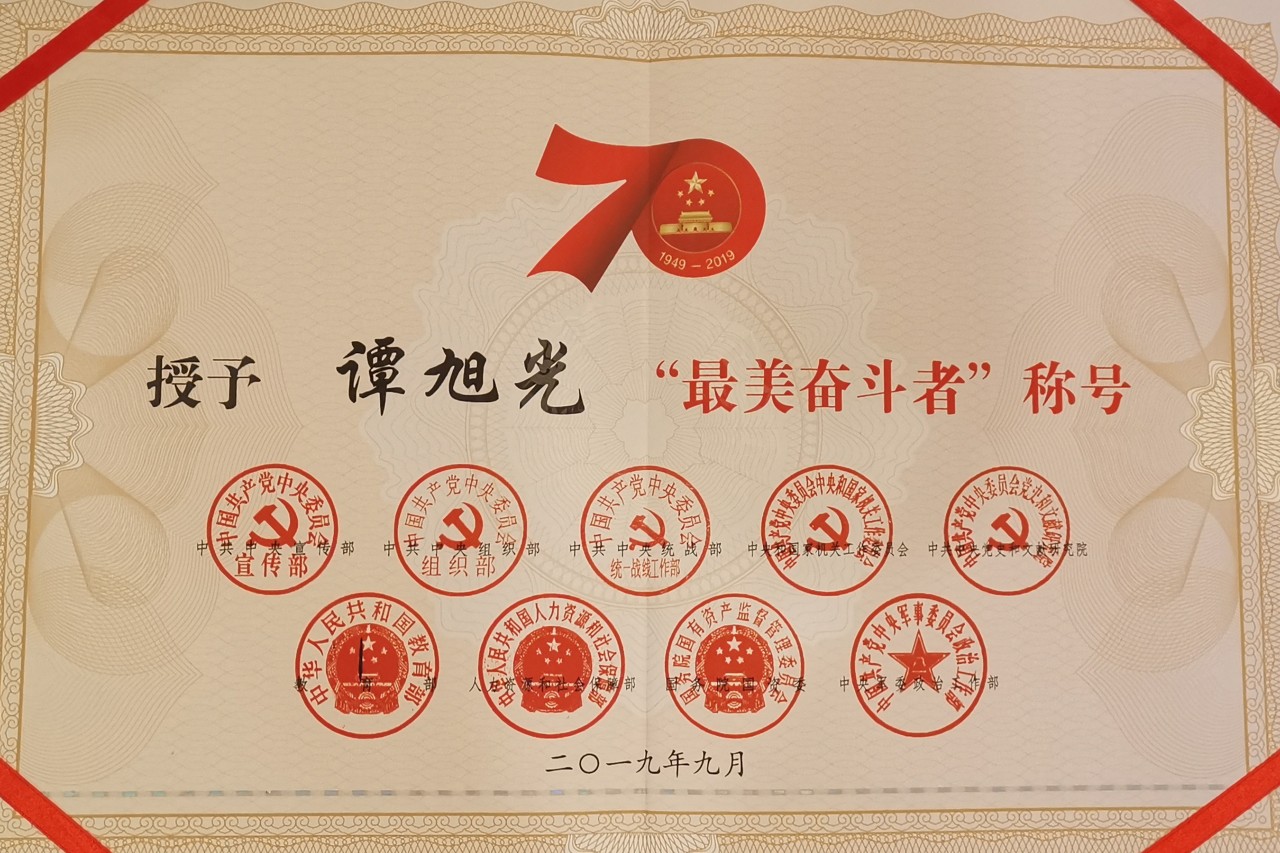 谭旭光荣获“最美奋斗者”荣誉称号