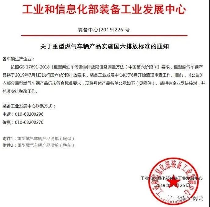 2019年4月,国家工信部装备工业发展中心下发《关于重型燃气车辆产品实施国六排放标准的通知》,明确自2019年7月1日起,天然气重卡将全国统一执行国六a排放要求,不达标车辆不能再上牌。同时2019年绝大多数大中型企业已经明确国三、国四排放标准的柴油车禁止入场,更是让一直在观望LNG重卡发展的用户下定了“弃油选气”的决心。