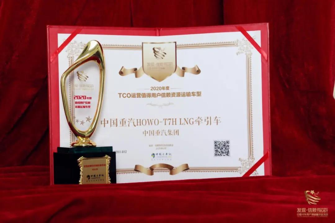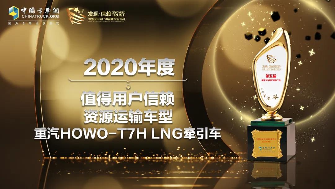 中国重汽HOWO-T7 LNG牵引车荣获“2020年度TCO运营值得用户信赖资源运输车型”